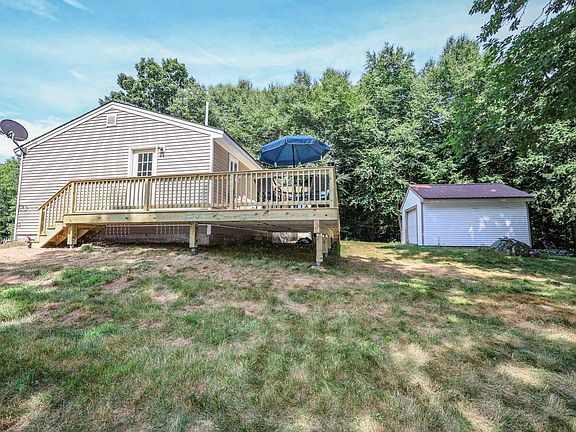 Welcome to 19 Middleton Rd, a charming ranch-style home nestled just outside the city limits. This inviting property sits on a wooded 5-acre lot, providing a natural buffer from neighbors and the noise of the world. The U-shaped driveway allows for parking at your preferred front door, with mudroom options at both entrances. As you enter the home, you'll be greeted by an open-concept living, dining, and kitchen area, perfect for entertaining guests. The kitchen features modern finishes, ample storage, and a functional design, making meal prep a breeze. The home's interior includes 2 bedrooms, a 9'x13' bonus room, with bathrooms on opposite ends of the house, offering privacy and convenience. Outdoor enthusiasts will appreciate the brand-new wraparound deck, ideal for enjoying your morning coffee or hosting a summer BBQ. The backyard also features a shaded patio, providing a relaxing retreat amidst the surrounding trees. Additionally, the property boasts ample parking for guests and a decent-sized outbuilding perfect for storing recreational toys. With direct access to the Powder Mill Club trails, you’ll be ready to ride as soon as the snow arrives. Located in the small, supportive community of New Durham, this home offers quick commuting access to the Seacoast via RTE 16 or RTE 28 towards the Epsom Traffic Circle. New Durham is known for its historical landmarks, library, hiking trails, and the crystal-clear water of Merrymeeting Lake. No Delayed Showings.