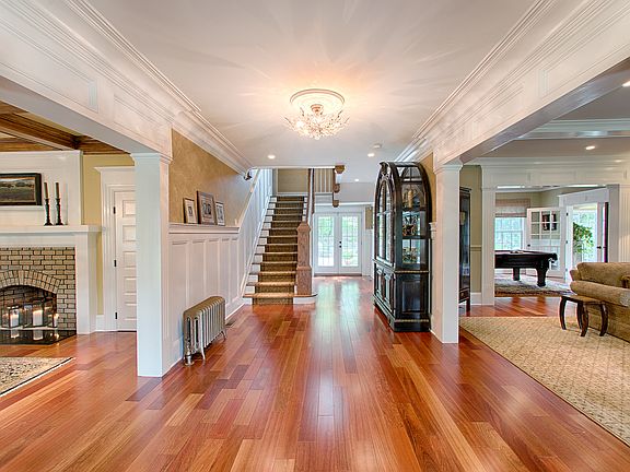 From the curb, the home at 19 Midvale Road commands attention with its hip roof and eyebrow dormer window. Encompassing the entire corner of Midvale and Ball Road, the large lot of just over an acre features a circular drive, the original puddingstone walls, gracious gardens and a new blue stone patio that gives the appearance it has always been there.Through the mahogany front door, the foyer immediately impresses with high ceilings, wide entranceways to the principal rooms and a lovely mix of modern touches with the original chestnut woodwork. New Brazilian hardwood floors grace the floors and the high ceilings, striking craftsman mantle and spacious rooms maintain the historic ambiance. This floor offers a new state of the art kitchen with adjacent office nook, formal dining and living room an additional entertainment space currently used as a billiards room plus a large family room with oversized windows and French doors leading to the side yard. The second level includes 3 of the 6 bedrooms and 2 full baths. The master suite is an indulgent retreat. One of the 4 fireplaces in the home is the focal point of this stunning room. Just off this room is the sizeable walk-in closet with custom organizing system and the newly renovated master bath with walk-in spa style shower and custom tile work. The 4th fireplace is found in the second bedroom on this level and the hall bath has been renovated with beautiful granite and tile work. The third level houses three bedrooms and another newly renovated hall bath. One of the bedrooms was originally designed as the Billiards Room. This spacious room is currently used as a recreation room.From its craftsman roots to the complete renovation, this home is inspiring. Located steps from the town market, schools and dock, the location is ideal.