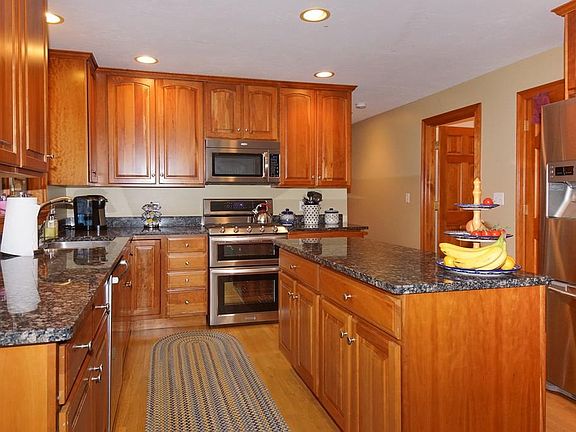 Stunning 4 bedroom 3.5 bath Colonial with a delightful farmers porch situated on a cul-de-sac setting. On the first floor there is a lovely 2-story foyer, formal dining room and an office with a fireplace. The eat-in kitchen comes complete with an island, granite countertops, stainless steel appliances and has sliders leading to the deck. In the cozy family room there is a 2nd fireplace, a vaulted ceiling with a skylight and recessed lighting. There are 2 master bedrooms, one on the first floor with its own private entrance leading to a deck, there is also a skylight and an en-suite bathroom. The additional master bedroom on the 2nd floor features an en-suite bathroom as well. The second floor also includes 2 additional bedrooms and a separate laundry room. The finished lower level offers an abundance of storage space along with a game room, den, exercise area and a workshop. Other features include central air and a bonus room above the 3 car attached garage. A truly fabulous home!