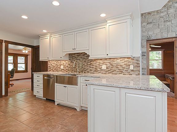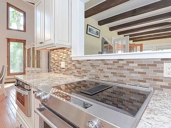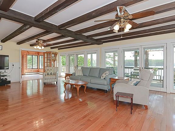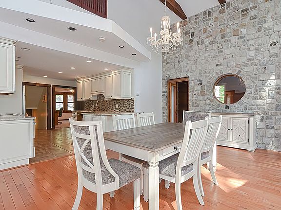 *Offers due 12:00 pm Tues., 6/7-make good until 7 pm on 6/7. Waterfront home on Lake Mirimichi with beautiful views from all levels of the home. Enter the large living room with wood beamed ceiling, beautiful stone fireplace, with exterior access to the large first floor wrap around deck.The renovated kitchen w/stainless appliances and granite opens to the dining room w/beamed cathedral ceiling that can accommodate large gatherings. Off the dining room, enjoy the lake views from the 4 season sunroom. A full bath & 2 additional flex spaces complete the 1st floor. Upstairs is the main skylit bedroom with a Jack & Jill bathroom. Enjoy the serene lake view from the balcony! 2 additional bedrooms complete this level.As a bonus, enjoy the home's finished lower level with its kitchenette, ½ bath, flex room and family room w/ a walkout to a patio and terraces leading down to the water. The spacious 2 car garage has a bonus space above for a multitude of uses.