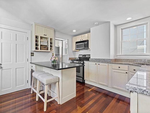 Spectacular penthouse duplex off Monument Square! This open concept 2 bed + office features an idyllic floorplan with historic pine floors, custom finishes, and Monument views from private roof deck. Oversized eat-in-kitchen offers granite counters, SS appliances, and built-in breakfast bar. Spacious and dimensional living room is suitable for full-size furniture. Formal dining is ideal for friendly get-togethers and Holiday hosting. Comfortably WFH in your handcrafted home office. Gigantic primary bedroom provides great natural light, walk-in closet, and tile surround bath. Second bed, with dedicated full bath, is perfect for the growing family or guests. Enjoy the seasons, sunlight, and spectacular views from your direct access private roof deck! Laundry in-unit. Basement storage. A truly rare opportunity to own a timeless piece of Charlestown.