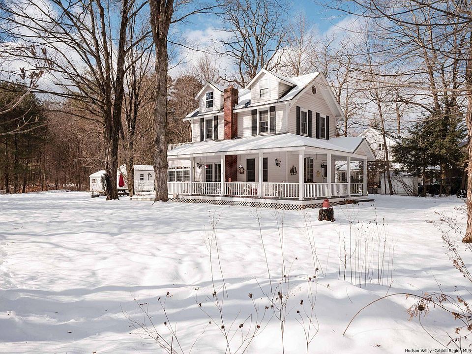 Welcome to the Esopus Creek Farmhouse in the desirable Mount Tremper, New York. This charming creek-side farmhouse perfectly blends historic character and modern amenities. This three-bedroom, 1.5-bath residence, set on a half acre, is a haven for those seeking a peaceful retreat with proximity to both natural wonders and vibrant community offerings. The property is situated directly across from the picturesque Esopus Creek and provides easy access to fishing, swimming, and various recreational activities. The farmhouse exudes timeless charm with original wood railings, doors, and wood floors, showcasing the enduring craftsmanship of a bygone era. Characteristic features such as clapboard exterior, board-and-batten accents, coffin ceilings, a wood stove, and a sunroom add to the unique allure of this home. Improvements include a tankless water heater, central air, two sump pumps, new windows, and Nest thermostats. The property also features a finished attic space currently set up as a playroom for storage. The exterior is equally inviting, boasting a wrap-around porch, back deck, and stone patio, offering idyllic spots to relax and enjoy the beauty of the surroundings. The flat yard, two sheds, and stunning mountain views contribute to the property's overall appeal, creating a perfect setting for outdoor gatherings and leisure. Convenience meets leisure with the Emerson Hotel, just a 2-minute jaunt away. Residents can enjoy the hotel's amenities, including a spa, restaurant, shopping, kids activities, summer pool passes, exercise classes, and more. The location places you within a 15-minute drive to both Woodstock and Phoenicia, offering a balance between serene country living and access to vibrant cultural scenes. Popular destinations surround the area, including the renowned Phoenicia Diner, Fox Fire Mountain House, Rail Trail, Ski Resorts, and various outdoor recreation opportunities. With its prime location, this farmhouse is a gateway to the best the Catskills region offers.