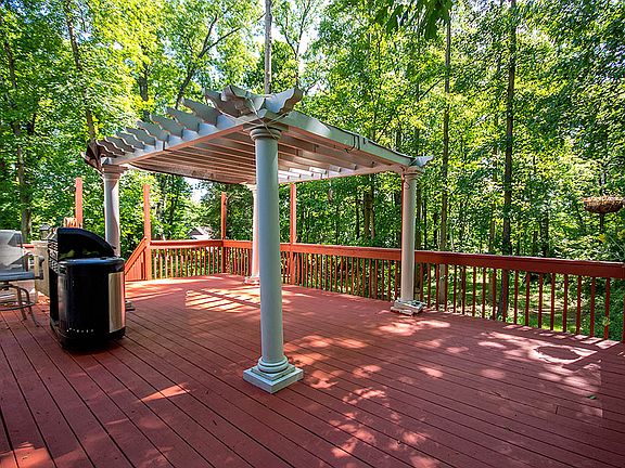 Spacious well appointed center hall colonial home. Private park like setting in one of the areas most sought after neighborhood's. High ceilings walk out bay windows, two story foyer,crown molding, H W floors and much more. Spacious kitchen provides center island, HW floors, recessed lighting, walk in pantry, full sized oak cabinet's, stainless steel appliances, built in microwave and smooth top range. Family room adjacent kitchen has HW floors and sliders to deck. Great room features floor to ceiling brick FP, HW floors and cathedral ceilings. Conservatory leads off Great room and provides panoramic views of back yard / wildlife sanctuary. Wrap around deck makes for great outdoor entertaining.Upstairs consists of four bedrooms and a bonus room. Basement is full with walk out entrance. AHS warranty for buyer..