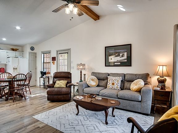 - Cathedral/Vaulted Ceiling, Ceiling Fan(s), Kitchen/Dining Room, Main Level Living, Primary w/Ensuite, Primary on Main Level, Open Floorplan, Pantry, Split Bedroom