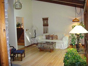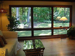 Move right-in to this beautifully maintained 1950's sun-filled contemporary. Lots of light, hardwood floors, tile & natural woodwork add to the warmth and appeal of this home. Walls of windows bring in the beauty of the outdoors all around. Cathedral ceilings. Bright kitchen w/ Corian counters, large DR/family room w/ new floors, LR w/ dramatic stone fireplace on the first floor. Upstairs are 3 spacious bedrooms & deck off the master. Cozy den (or 4th bedroom) & .5 bath downstairs. All on a large private lot w/ expansive lawn & stunning gardens. Quiet yet convenient neighborhood.