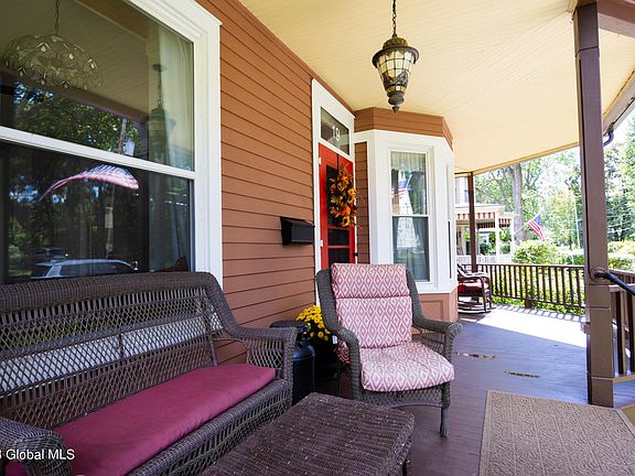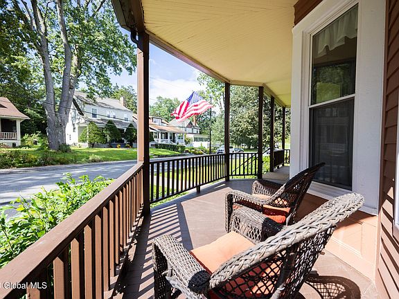 Rare opportunity to own a restored Victorian home in the heart of Menands Village. Featuring 9.5 ft ceilings, 1st fl includes LR, DR, eat-in kitchen, full bath, enclosed patio, mudroom, a circular turret sitting area. 2nd fl boasts 4 large bedrooms with ample closet space, 2 full baths. 3rd fl is a teenager's suite or effecient office space with 3 rooms that lead to a front sleeping porch. Brand new double HVAC and central AC systems, remodeled kitchen and baths, dozens of updates available upon request. A stone's throw from the library, hiking trails, Ganser-Smith park. Centrally located just minutes from Regeneron, Nanotech, Rensselaer Tech Park, Albany Med & Empire State Plaza. Award winning elem school & choice of HS: Shaker, Tech Valley, S. Colonie, Watervliet. Pristine condition.