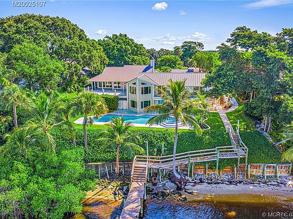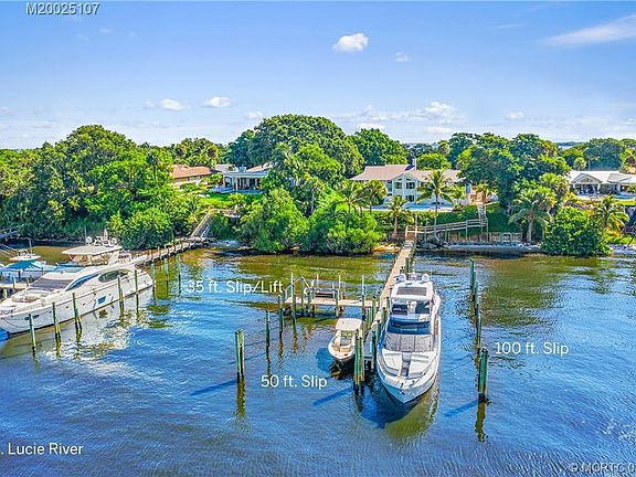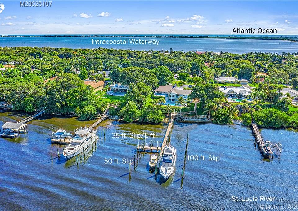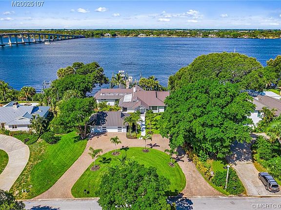 Reduced $305,000 (from OLP) - Will not last long! Set on a .728 Acre, Deep Water Ocean Access Lot, on a beautiful bluff overlooking St. Lucie River (135' frontage) is the "Casa de Santa Lucia". The Deep Water Dock includes your own "private marina" with a 100' slip, 50' slip, 35' slip/11,500 lb boat lift, 3 electric pedestals, 50 AMP service and water. The home has 6,430 total sq'/4,526 living sq', 4 BR (2 en-suite), 4 FB, 1/2 Bath, a lovely 48' pool, lighted spa, spacious covered decks, center courtyard and an oversized two car garage with golf cart door. The Home has a New Effective Date of 2020, it was extensively renovated with New: impact windows/sliders, doors, metal roof, flooring, bathrooms and kitchen. The kitchen features Thermador and Subzero appliances, with double dishwashers, a wine cooler, custom cabinetry and island breakfast bar. The close to everything location and walking distance to "downtown" shops and restaurants, give this home a 5 Star Lifestyle - Inquire Today!