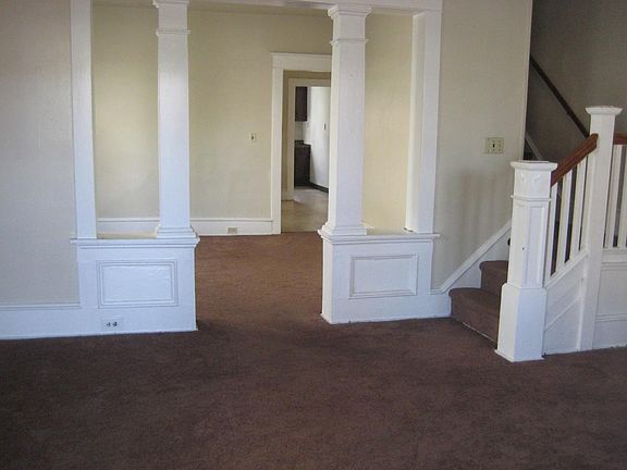 Very spacious, clean, nicely maintained twin in decent neighborhood. Offers 4 large bedrooms, 1 bath, LR with attractive non-working fireplace, second LR/family space, large DR off kitchen. First floor washer and dryer. Home boasts of large rooms and 9 foot ceilings, partial river views from third floor. Many new windows, lots of natural light. Wall to wall carpets throughout; first floor carpet 1 year old. Open front porch to enjoy summer breezes. Large basement for storage. All appliances included. Small rear partially fenced yard - minimal lawn maintenance. Immediately available. HUD/Section 8 welcome. Prior landlords, evictions and income verified. Tenant responsible for gas boiler heat, water and electric; lawn maintenance, snow removal.