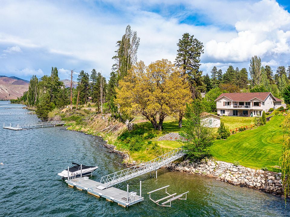 What a setting! Well cared for daylight rambler home on 1.14 acres of medium bank Columbia waterfront w/ an additional cabana home. Quality built dock shared w/ 2 neighbors, boat lift, beach part of the year, & plenty of parking. The main home offers main level living & open great room floor plan w/ plenty of windows to take in the panoramic river & mountain views. The living room has a cozy fireplace & is open to the kitchen w/ island & newer appliances. Large master bedroom has views & private bathroom. Walk out basement has large light filled family room, bathroom w/ exterior access, guest bedrooms (one is being used as a shop) & 2 additional rooms for crafts or storage. Cabana has a large room w/kitchenette & 2 bathrooms w/ showers.