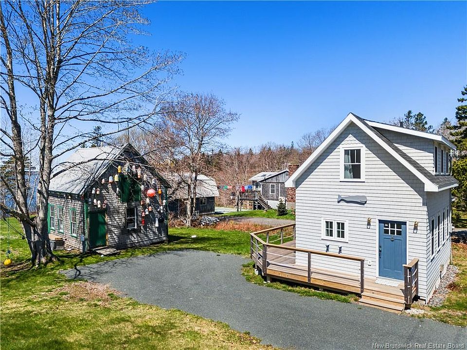 Campobello Island is calling your name! This 2 bedroom, 1.5 bathroom home has been completely transformed into a bright, airy and cozy seaside cottage. Located a few minutes from the ferry landing and within walking distance to the restaurant and beach, this home sits on 0.3 acres of waterfront property with spectacular views. It has a large grass yard, mature trees and a picturesque shingle garage for extra storage. The home is also built with a charming shingle exterior and has a wrap around deck for plenty of outdoor living space. As you walk inside you are immediately greeted with a pleasing open-layout and tons of natural light. The kitchen is charming and cute with an eat-in area, leading you into the living room and half bath off of that. The views looking out to the water from the living room are simply beautiful. Upstairs there are 2 nice sized bedrooms and a full bath. The home has been tastefully updated and includes most of the furnishings, making it a wonderful Airbnb opportunity or move-in ready summer home. Campobello is the next up-and-coming tourist destination, now is the time to invest in the bold coastlines of the Fundy Isles!