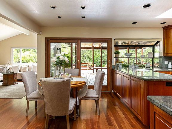 Magnificent single-story home in Jeffery Ranch with a sports court & private backyard. Gorgeous eat-in kitchen with garden window, custom cabinetry, granite countertops, built-in 42" subzero refrigerator, Viking gas stovetop & electric convection oven. Inviting family room with gas fireplace. Spacious living room with vaulted ceilings & adjacent dining area. Master bedroom suite with remodeled bathroom including a jetted tub for 2 & a separate shower. 2nd oversized bedroom with ensuite bath. 2 additional bedrooms (1 currently an office) shares a 3rd full bathroom. Multiple energy/water-saving features include owned solar, solar tube lighting & dual pane windows to name a few. The back offers a place to entertain year-round under the covered redwood deck which overlooks the pool, also accessible from the master suite. Enjoy a sports court, for basketball, volleyball & more. Inside laundry & 3 car garage with workshop. Walkable to Clayton's downtown & minutes to shopping & restaurants.