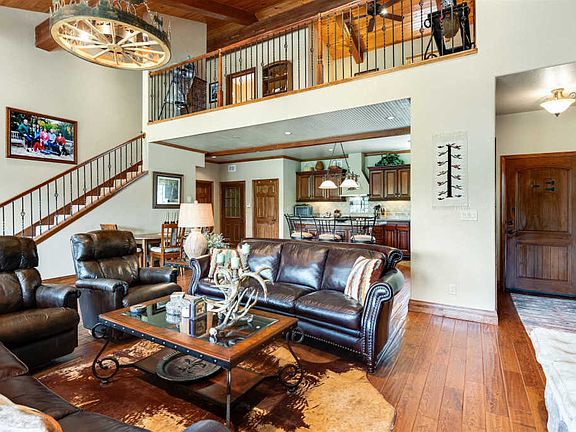 Escape to the Crisp Clean Mountain Air of Pendaries Village and Behold this Masterpiece! This stunning Lodge Style Home features massive wood beams, solid oak floors, soaring 20 foot ceilings, 2 stone gas-fired fireplaces and 2 viewing decks to take in the panoramic vista of the Sangre de Cristo Mountains, and the pastoral Rociada Valley. This tri-leval home features top quality cabinetry, solid wood doors, granite counter tops in kitchen, stainless steel appliances, and is being offered Completely Furnished so pack your bags and get ready for Fun! Whether you are looking for a vacation home where you can Golf, Ski or just relax, you can do it all here! Sipapu for skiing is about a 30 minute drive. This extraordinary home is made for entertaining! From the Rec Room on the lower level complete with pool table, and wet bar, to the Bocceball Court, and the hammock on the deck there is fun and relaxation for everyone. Bring the family and your friends. There is plenty of room for all in this 4 bedroom 3 bath Getaway!