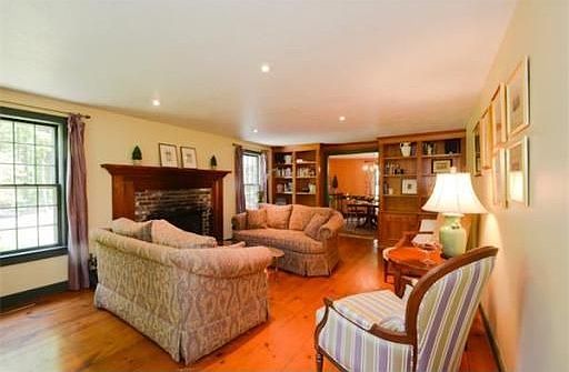 Private, wooded country retreat spread over 4 beaut acres of lawn, herb gardens and flower gardens abutting 200 acres of conservation land. Distinguished period details, wide pine floors, custom built-ins, 4 fireplaces. THE MAIN residence boasts a formal L.R, D.R., updated kitchen, F. R., Den, 4 generous bedrooms and 2.5 updated baths. A screen porch overlooks the priv. tranquil backyard. THE IN-LAW consists of a bedroom w/full bath, office/den, kitchenette w/laundry, and private screen porch.