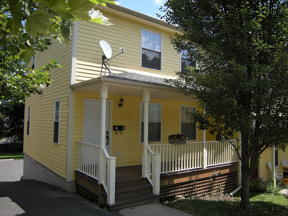 Located in the center of Rhinebeck Village, this energy star unit is beautiful and efficient. Offering a covered front porch, rear deck and under garage. Built in 2010 and it still looks brand new. The washer/dryer are located upstairs by the full bath and 2 bed room. Off street parking and nice backya Owner lawn service and snow removal