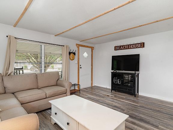 Welcome to this beautiful 3-bedroom, 2-bath home on the water, located in the sought-after Windjammer community. This home comes furnished, including a complete kitchen setup, a cozy living room, a dining room table, and a beautifully primary bedroom. Offering a seamless blend of comfort and convenience with an open floor plan that connects the living room, kitchen, and dining area—perfect for entertaining or everyday living. The kitchen boasts stainless steel appliances, while the recently updated bathrooms feature fresh paint, modern lighting, and brand-new vanities. Step outside to enjoy the screened-in back porch, ideal for morning coffee or evening relaxation and the welcoming front porch, where you can take in the charming curb appeal. Additional highlights include a 2022 roof, updated HVAC system, and proximity to the beach—a quick golf cart ride away. This home features a detached garage and shed, providing ample storage for your golf cart, motorcycles, and other outdoor equipment. You’re also close to local shops, restaurants, and ice cream spots, with the famous Marsh Walk just 2 miles away. Windjammer Village offers fantastic community amenities, including a pool and clubhouse, making it a perfect choice for a primary residence or second home. Don’t miss out on this slice of coastal living!