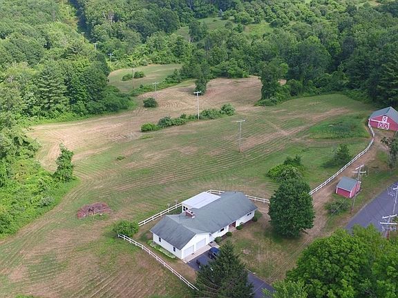 This home sits on over 12 acres on the Shelburne line overlooking a gorgeous view to the east. It is about 10 minutes to either the center of Greenfield or Shelburne Falls. The property consists of a two-bedroom ranch, a large shed, and a horse barn. Enter the house through a mudroom w/coat closet from either the garage or the front. A den has a fireplace flanked by bookcases on both sides. Hardwood floors extend to the living room & down the hall, where a closet has been converted to accommodate a washer & dryer. Enjoy cool breezes and the view from the large sunroom that is accessed through a slider from the dine-in kitchen. A spacious walk-out, partially finished basement on its own heating zone offers lots of possibilities for additional living space. There is a 3rd bathroom with a jet tub in the basement, as well. The shed and barn both have electricity. The barn has water, 4 stalls, a bedding storage area, a tack room, and hay storage above. Watch the narrated video for more.