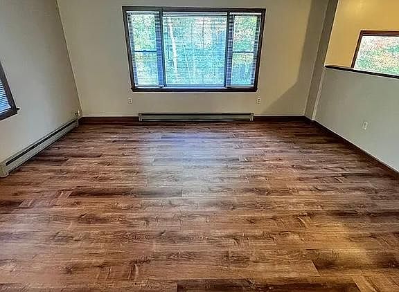 This main area of the home is perfectly built to relax or entertain. In the corner of the second floor, you will find a spacious kitchen with plenty of cabinets, a large countertop, and a bay window. There's even a small closet for a pantry and a half bath for your convenience. Cook your favorite meal and sit out on the deck to enjoy those Fall Colors!