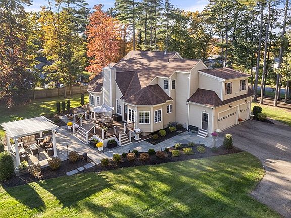 This exquisite custom Colonial is situated on a level .94 acre lot. The highlight of this home is the beautiful backyard oasis! Outdoor living includes an expansive Trex deck, 3 large bluestone patios, covered pergola & dedicated grilling station. A sunlit two-story Foyer features a catwalk and curved balcony. Quality finishes reflect sophistication and style throughout this 5 bedroom,4.5 bath home. 9 foot ceilings, crown molding, wainscoting & hardwood floors inlaid w/Brazilian Cherry are just a few of the custom details. The main level features an elegant Living Room, Dining Room, Family Room w/gas fireplace & cathedral ceiling. French doors to a Home Office w/bay window/window seat, built in cabinetry & wine storage. The gourmet Kitchen features a breakfast nook, center island & upscale GE Café appliances. The 1st floor Primary Suite offers a Spa Bath & a generous walk-in closet. The 2nd floor includes 4 spacious bedrooms, 2 with ensuite bath, a full bath and a bonus room.