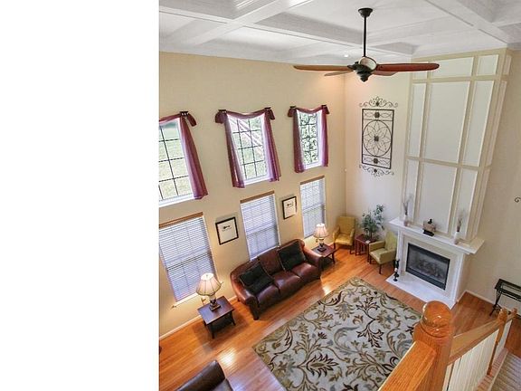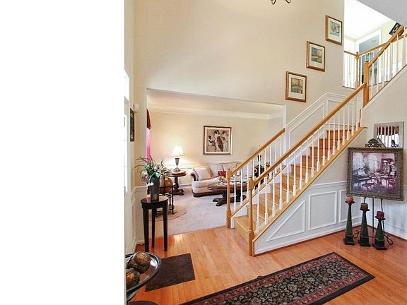 Welcome home! Dramatic features only found in luxury homes include open floor plan, two story family room with back staircase. There is a gas fireplace with blower, and custom wood trim work throughout including a coiffured ceiling. Gourmet kitchen with walk in pantry, center island with sitting area.Powder Room has marble tiled floor. Cathedral ceiling retreat area off master bedroom and marble tiled master bath with whirlpool tub and shower. First floor has private office/den. Laundry is located on the second floor for your convenience. The lower level offers a finished basement fully carpeted with recessed lighting. Garage is finished with drywall. Outside features include custom landscaping and a brick paved entry. The expanded rear deck is 500 square feet, perfect for entertaining. Close to turnpike and shopping center.