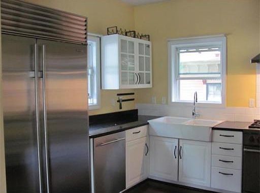 Beautiful first floor condo with economical Gas heat. Kitchen with ss appliances, Wolfe 6 burner gas range, Sub 0 ref, Granite counter and hardwood floors. High Effeciency Washer and dryer included. Living room with w/w & dining room with hardwood, 3 Bedrooms, full bath and 3 off street parking spots. 2 Decorative fireplaces. Renovated from studs in. Beautiful building, and great room sizes. This is a must see.