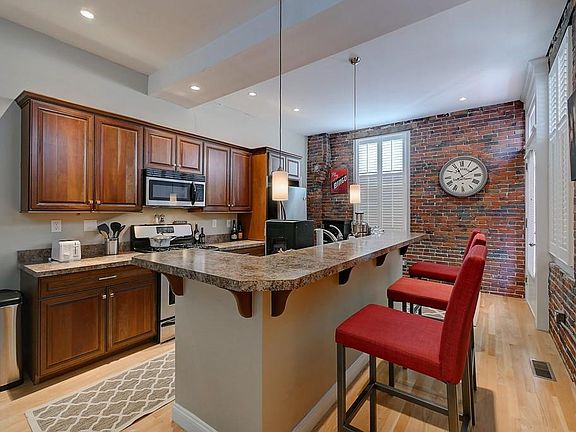 An amazing opportunity to own a unique one-of-a-kind loft in a prime downtown location! Located on a quiet side street, but close to all of downtown's attractions, this full-floor condo offers a suburban feel with city living. Enter through your private entrance from your deeded on-site parking spot into an immaculate kitchen, with SS appliances and loads of cabinet space. The open concept layout flows into a large living space with built in shelving, huge windows, and exposed brick throughout. The bathroom offers an oversized shower, large vanity, and in-unit W/D. Hardwood floors throughout kitchen and living area. The bedroom has a large sitting area that could be converted to a walk in closet or office. Impeccably maintained building with very reasonable condo fee. Also included is a private storage unit in the basement! This unique offering will not last long- come by today!