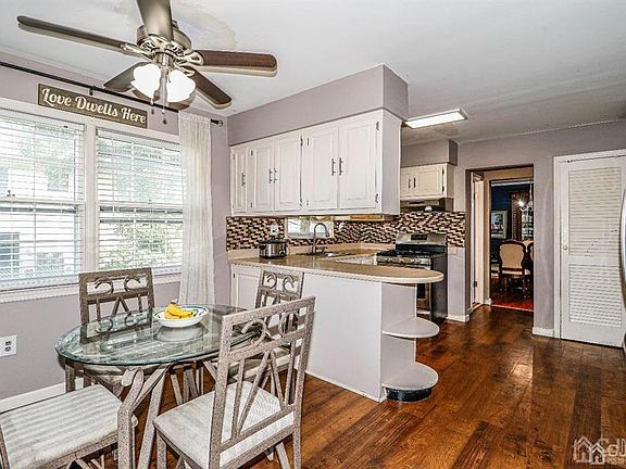 Great classic side hall colonial in the Gramercy section of Piscataway. This beautifully well maintained home offers generous sized rooms, beautiful hardwood floors throughout first floor and second level. Large picture windows adorn the spacious living room. The eat in kitchen has Corian countertops, a peninsular for breakfast bar eating space with extra floating cabinets that overhang above. There is also a separate adjacent dining area for casual dining. This kitchen offers a full entry pantry and built-in desk type seating. These features, you don't see in the cookie cutter homes. Lots of potential for expansion. The huge family room is open to the kitchen, and boasts a wall to wall brick wood-burning fireplace. Wall to wall raised hearth seating and storage for wood. Great for entertaining. The upstairs owner suite is very spacious with two closets newly remodeled bath with stand up shower. There is also a separate vanity in the dressing area. The additional 3 bedrooms are all nice sizes. The spacious full basement is partially finished with lots of potential. Laundry room, recreational area, Sump pump, radon remediation system, and newer hot water heater utilizes this space. This house has great bones. Not to be passed up. Close to various shopping areas and minutes to NYC trains. All appliances in working order, but in As-Is condition.