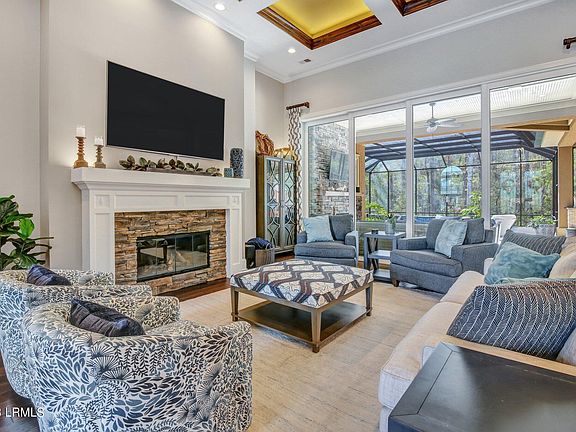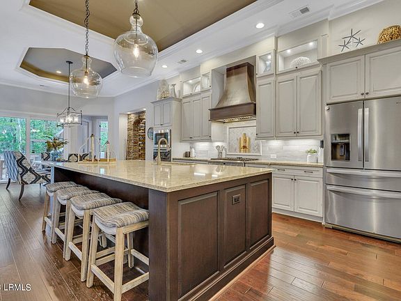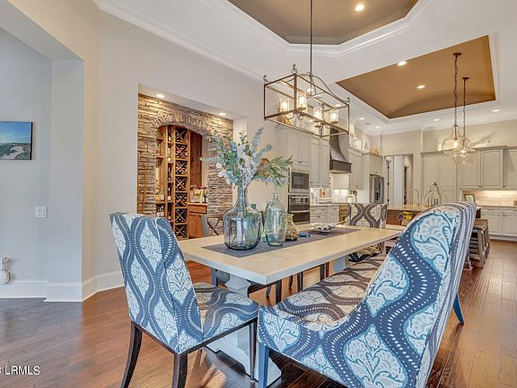 This stunning custom home in award-winning Hampton Lake is an entertainer's dream! Over 4,300 sq ft of beautifully finished space on a large private lot that backs up to a nature preserve. This 4BD/4.5BA home includes a luxurious primary retreat, all en-suite bathrooms, a gourmet kitchen with a chef's pantry and wine cellar, 2 flex spaces that can be used as a playroom or office, and a home theatre. The impressive outdoor oasis is complete with an outdoor kitchen, a living area with a fireplace, and a covered heated pool/spa. Make this stunning move-in ready home yours today and start living the Lowcountry dream!