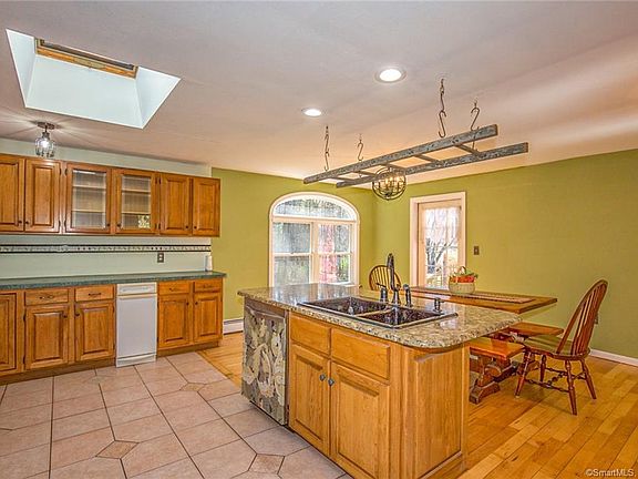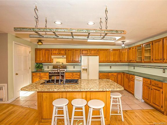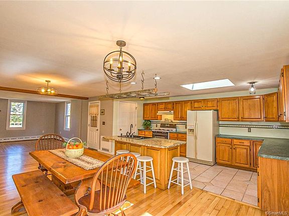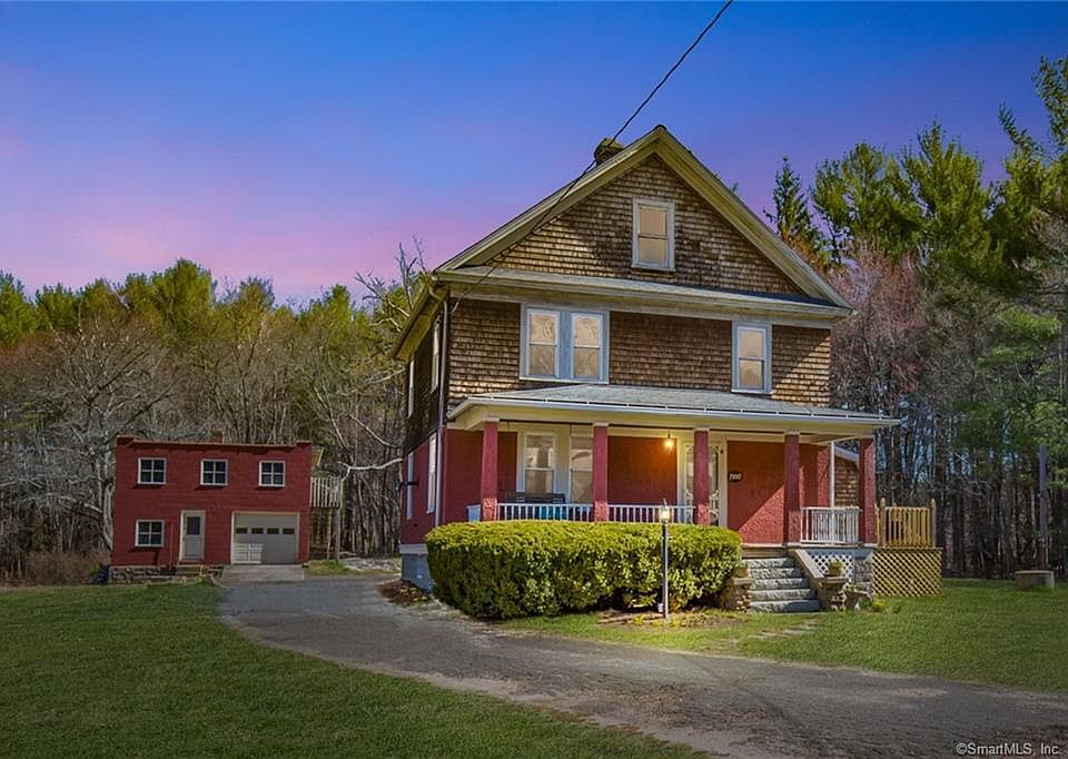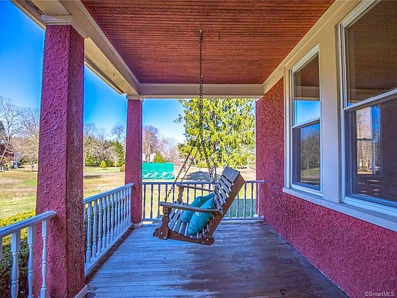 Built in 1900 this home has an updated open floor plan and sits on 4.20 acres in the heart of Stafford. Beautiful hardwood floors have just been refinished. The kitchen skylight and palladian style window in the dining area let in plenty of natural light. Easily fill your largest stock pots from the pot filler above the stove. Plenty of cabinets and hang all of your pots and pans from the ladder over the kitchen island with granite top. The dining area opens to the living room with a pellet stove to keep you warm. Updated farmhouse lighting is the perfect finishing touch to this home. First floor updated full bath with laundry area. First floor bedroom has a beautifully laid hardwood floor would also make a great office, study area, or play room. The second floor has three generous size bedrooms and half bath. Walk up to the attic to store all of your belongings. Sit on the covered front porch swing and enjoy a summer evening. The side deck is trex and is great for grilling and entertaining. Bring back the screen room and enjoy outdoor dining and entertaining. The detached garage has one overhead door, workshop space with wood stove, and a second floor for more storage. Horses and livestock are allowed in accordance with the zoning regulations. Just behind the garage is the old trolley track and makes for a beautiful walking trail. Conveniently located to downtown Stafford, Stafford Motor Speedway, I84 for a quick commute to Hartford or Boston. Your new home awaits