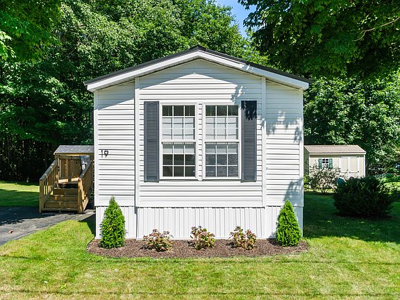 This FULLY FURNISHED, REMODELED 2 bed, 1 ½ bath manufactured home located in Patio Park, a 55+ community located in the heart of southern Maine in the picturesque town of Gorham, is ready for its next owner! DESIGNER INSPIRED property shows like a model and features an OPEN FLOOR PLAN and split bedrooms for ultimate guest enjoyment. Recent updates include: complete KITCHEN REMODEL including stainless steel appliances, white shaker-style cabinets and countertop (2022), new refrigerator and range (2024), LUXURY VINYL PLANK FLOORING in the main living area (2022), carpeting in bedrooms (2022), HEAT PUMP / mini split (2022), HOT WATER HEATER (2023), washer and ventless heat pump dryer (2022), updated lighting, interior paint of walls and ceilings, NEW SHED (2024), heat tape (2023), window treatments and more! As an added benefit, the Gorham Cross Town Trail borders Patio Park Lane. Explore easy access to this 2.9-mile trail great for birding, hiking, and snowshoeing or visit Gorham Village with its American flag lined streets, shopping, dining and entertainment or spend a day of fishing at Shaw Park in Gorham, Maine located on the west side of the Presumpscot River at the intersection of the Mountain Division Rail Trail. The possibilities are endless! Located just 8 miles to the Portland Jetport and 10 miles to the historic Old Port district in Portland, this quintessential New England area is calling you home. Schedule your viewing today!