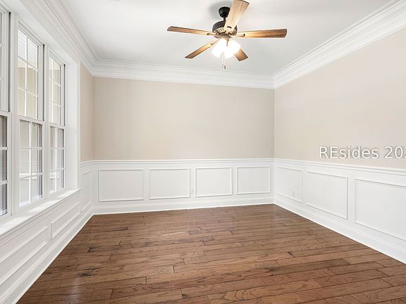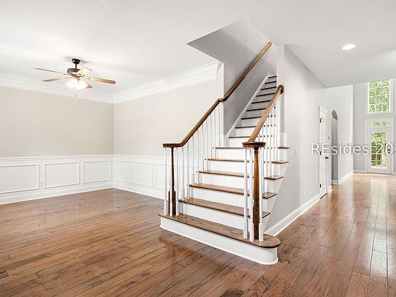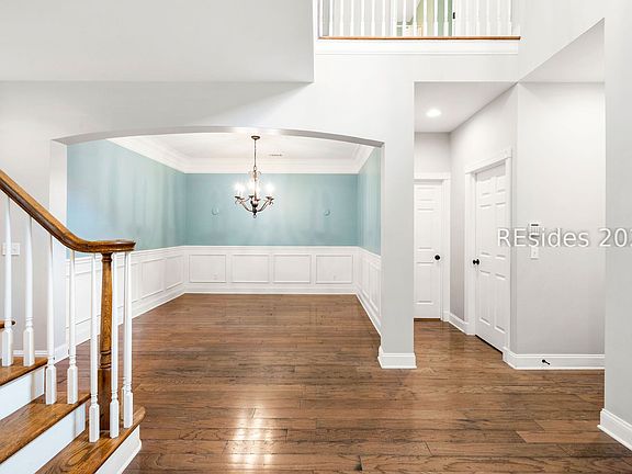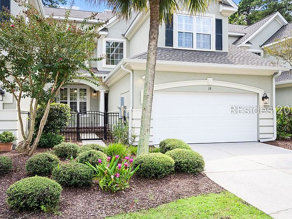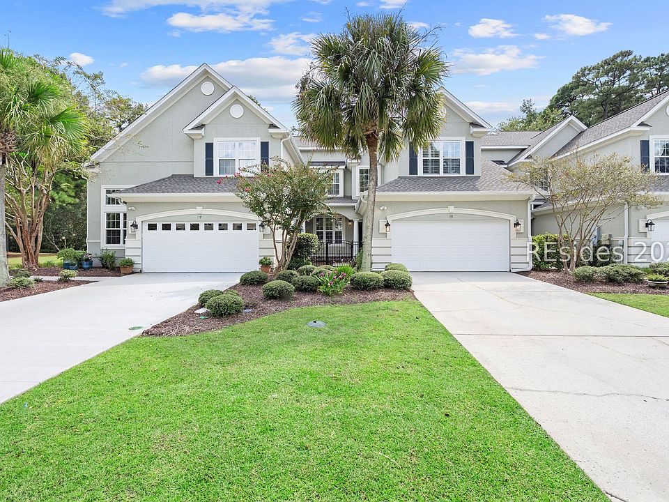Resort amenities & low-maintenance living - a dream come true! This spacious Addison model Carriage Home provides a desirable light-filled open floorplan, soaring ceilings, handsome wood floors and high-quality finishes. Enjoy a dedicated office, dining room, and central kitchen with oversized granite island, stainless appliances, pendant lighting, and ample cabinetry. Great room features stately wood fireplace and breathtaking windows. Convenient first floor owners suite with cathedral ceilings, plantation shutters and oversized bath equipped w/soaking tub & shower. You'll love the open-to-below loft upstairs, and two sizeable guest rooms with plenty of storage. Rear patio w/private wooded views are perfect for relaxing evenings or a morning coffee. Hampton Hall is home to luxurious amenities including indoor & outdoor pools, multiple restaurants, club activities, award winning golf, new pickleball courts, fitness center, gated security and multiple access points to Buckwalter and Old Town Bluffton.
