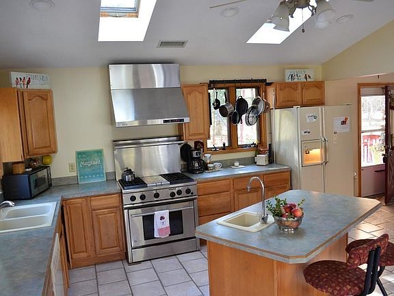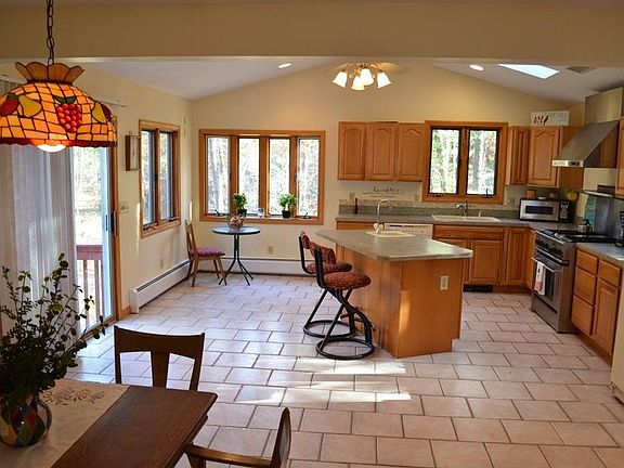 Fantastic 3 bedroom home on a gorgeous 1.17 acre property, nicely tucked away but convenient to everything. Directly off the front porch, cathedral ceilings with skylights greet you as you enter the well appointed kitchen, with an island, and natural gas for all your cooking and baking needs. The whole house fan keeps you cool in the summer, while in the winter a 3 zone heating system keeps you warm wherever you are. The heated towel rack in the bathroom works wonderfully. On the lower level you have your washer/dryer hookups, with plenty of room to add a second bath, if desired. The partially finished basement also has a thermostatically controlled gas fireplace, which runs even when the power goes out. Walk right out into your private back yard, from the downstairs door. The separate garage has its own electric service, and even a hose hookup for your garden. The gutters flow to an underground drainage system. Money saving details abound in this house... Make your appointment today!