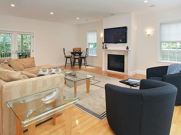 Ideally situated in West Newton Hill's Peirce school district, this fabulous 2006-built townhouse sits on a 12,278 sf shared lot with a huge private backyard. It offers exceptionally easy access to the shops, restaurants, the commuter rail and major routes. This unit truly feels like a single family home with almost 4,000 square feet of living space. A bright foyer leads to the open kitchen with granite counters, stainless appliances, an eating area and French doors to the private covered deck. The kitchen opens to the spacious dining room and the expansive living room with a gas fireplace and French doors to the deck. Also on this level are the powder room and direct entry to the 2 car garage. On the 2nd level is the master suite with vaulted ceilings, 2 walk-in closets and a large en-suite bathroom. There are 2 more bedrooms and a hallway bath, plus laundry and a 4th bedroom with vaulted ceilings and an en suite bath. The lower level has a large bonus multi purpose room.