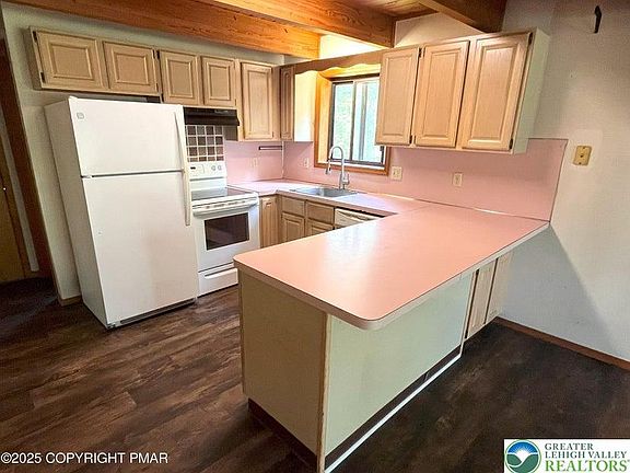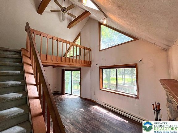 UNTAPPED POTENTIAL at this TOWAMENSING TRAILS 3-STORY CHALET! Don't miss this opportunity to purchase in this DESIRED STR-friendly community at a great price! This 3 bed / 3 full bath raised chalet is ready for it's new owner--bring your vision and make it your own! Lower level features a family room with bar area and built-in golf cart-sized garage in the rear! Main floor showcases vaulted ceilings, an open concept floorplan, nicely laid out kitchen and exposed beams and tongue & groove ceilings for timeless rustic charm! The stone-faced fireplace and bright and airy loft make this a perfect layout for mountain living! Top floor features a primary suite with ample closets and Juliet balcony! Front deck attaches to a breezy screened in side porch! All this in one of the Poconos' most sought-after communities featuring 193 acre spring fed lake, swimming pool, clubhouse, marina, tennis, pickleball, basketball, 24 hour security and more! Great location--minutes to I476 or I80! Great investment whether you're looking to move-in, vacation, long-term rent, STR, or renovate and sell! Come check it out today!