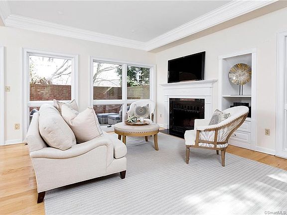 Ready for easy living and no worries? Enjoy the dramatic MAIN LEVEL living areas in this in-town condo with cathedral ceilings, crown moldings & natural light providing a pleasing open feeling. A wonderful large LR/DR with fpl and blt-ins with a wall of windows opens to a private walled terrace. Second floor MBR suite and additional BR w/bath. Large lower level - an additional 650sq ft. is great for triple purposing - FR, office, work out room. Add a large attic storage area and oversized 1 car garage. Walk to town & train and to Goodwives Shopping Center with great shops at your finger tips!