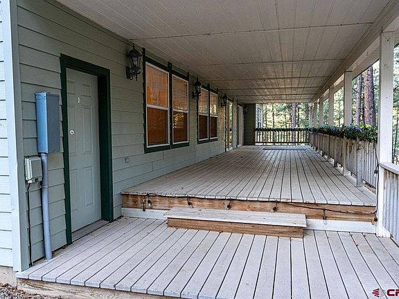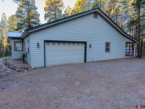 Beautiful mountain home located just outside of Bayfield, CO. This 3 bedroom, 2 bath home with detached 4 car garage has so much to offer. Enjoy sitting on the covered back porch and hiking right from the property. The one owner home, which was built in 2000 contains approximately 2965 SF. Upon entering the home, you are welcomed by a large great room with vaulted ceilings and a well-appointed kitchen with custom cabinets and a nice dining area that flows into the large living room. The covered porch is a great place to have a cup of coffee and enjoy the neighborhood wildlife. Additionally the home features a primary suite with large bathroom and walk-in closet. Two additional bedrooms, an office, and large laundry room with crafting area rounds out this wonderful home. The home has an attached two car garage along with a storage room or shop area. Outside you will find a detached 4 car garage with plenty of room for a shop or toy storage. The property is nicely landscaped and ready for new owners. Entertain your friends or simply enjoy your morning cup of coffee/tea or evening wine as you'll watch the abundant wildlife parade by. Lake Simpatico is the neighborhood lake where you can fish, hike, canoe, paddle board, or walk the dogs with national forest nearby for the longer hikes or bike rides. The property is served by Forest Lakes Water, Black Hills Natural Gas and an on-site septic system. Home is 10 minutes from Bayfield and 35 minutes to Durango. Call the agent today to set up a tour of this great property; you'll be glad you did.