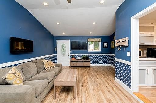 Come check out this charming cape house located on a corner lot with ample off street parking and deeded beach rights just minutes from Oldham Pond. The home features 3 bedrooms with the uniqueness of a first floor master. The interior boasts updated kitchen and family rooms with solid surface counter tops and wood flooring. Central A/C, clean efficient gas heat and a finished basement for all to enjoy. Spacious flat fenced in backyard with close proximity to the beach and play area, enjoy all that Oldham Pond has to offer!