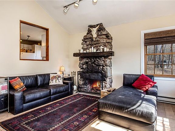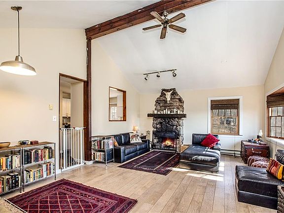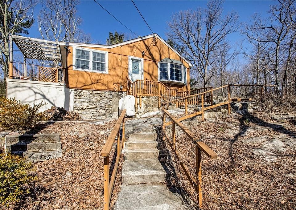 This Charming Country Home is not only a beautiful place to live but truly a retreat from life's stressors. Nestled in the Woods on over 1 private acre, enjoy every layer of this breathtaking property. There are level areas for relaxation or entertaining as well as beautiful dimension with rock and stone. Countless hours will be spent in the fresh air but when you come inside, you'll experience equal tranquility and pleasure. Enter to an open living and dining room area with a warm and cozy fireplace, a delightful den that leads to patio with gorgeous mountain views, a modern white kitchen-bright and airy, two nicely-sized bedrooms and a large updated bathroom. Additional benefits include a spacious attic for storage, cathedral ceilings in the main living space and amazing flow throughout. This wonderful Lake Community offers 3 beaches where you can fish, canoe, or sunbathe, a great community center, and a lakefront deli/diner. Less than 1 hour from NYC. Come and experience the dream!
