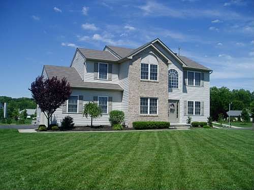 No need to wait for new when you have this beautiful seven year old home that offers so much. First floor offers nine foot ceilings, open formal foyer, private living room, and dining room. Kitchen has breakfast bar and extended nook area that connects to cozy family room with gas fireplace. Laundry room is convenient on first floor and has a rear entrance to the yard. Master suite with walk in closet, great master bath with double vanity, soaking tub and seperate shower. All bedrooms are generous in size. The full basement is finished with great room and play area, built in shelves and bookcase. Plenty of storage and exercise area makes total living space 3000 square feet. Now to the yard, there is a beautiful inground-heated pool, custom designed shape with diving area and hot tub section, surrounded with brick patio and professional landscaping. Upgraded lightening and sprinkler system with maintenance free fence. Side load garage and exterior shed for storage. Located withing walking distance to township's new park.