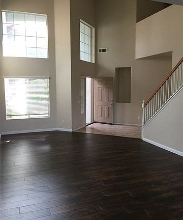 Beautiful home in Tuscany Hills. Come see this open & bright floor plan. This 3,093 sq. ft. home features 5 Bedrooms, 3 full baths, tile in the entry, cathedral ceilings, new carpet and new wood flooring throughout, large living room & dining room, large open kitchen with granite counter tops, built in desk workspace & a large family room with fireplace. Main floor bedroom with full bath, laundry room and 3 car garage. Upstairs in the hall are built in cabinets which are great for storage, huge master bedroom with a view of Canyon Lake and the Mountains. 3 other bedrooms upstairs which are generously sized and a full bath with dual sinks complete the upstairs. Located in Tuscany Hills Community with resort style amenities that include a pool, spa, clubhouse, gym, tennis, volleyball, park and more.
