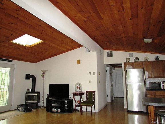 Not just a house but a HOME! Enter the main living level offering a Great Room with sky lights & sliders to outside offering natural light. Add the knotty pine cathedral ceiling and propane stove for welcoming warmth, the updated Kitchen with Breakfast Bar + Dining Area; 3 Bedrooms, one with private bath, another with direct access to the hall bath + vanity/dressing area. The finished lower level is a real treat too, offering: A bedroom with private entry/exit to outside, a den, spacious laundry room + a huge family room with space for all. The shed, huge deck & nice sized yard, No Lawn to MOW & no SNOW to shovel is a real plus. Add the bonus of Community pool, sports courts, play ground, clubhouse with gym & summer entertainment/events along with non-motor boat lake/dock to fish & go boating and you have Country Living at its BEST!! Seller cannot close until the Fall of 2020