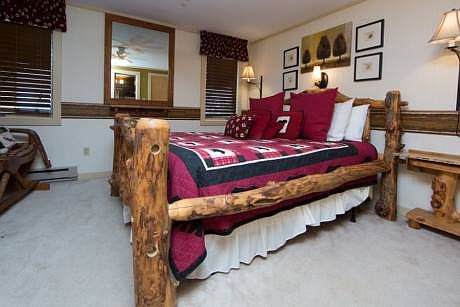 Strap on your skis or board and enjoy the day from this ski-in/ski-out condo located just steps from the Powderige lift. Come back in for some cocoa and warm up by the log burning fireplace. At night relax in the cozy log cabin atmosphere or take a long bath in the jetted bathtub in the master bath. Or if nightlife is more your style, catch a bus to the village or Split Rock pool from the conveniently located bus stop just across the road. You will enjoy this chalet style home and it's many amenities.