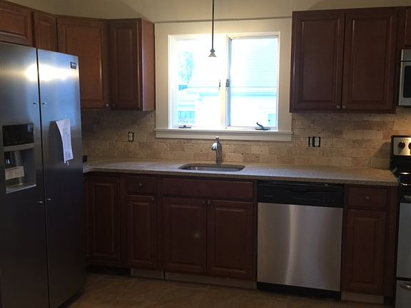 Beautiful remodel! Kitchen features quartz counters and stainless appliances. Plenty of cabinet space too. Kitchen door leads out on to a good sized deck for entertaining. Fenced backyard and 2 car detached garage. Gleaming refinished hardwoods, abundant natural light, plenty of parking and pets are negotiable. Additional pet fee may apply. Close to shopping, Naval Base, the trendy Broadway restaurants, shopping and downtown Newport.