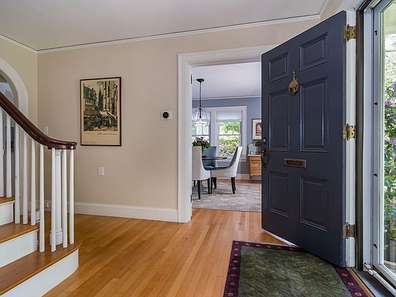 Welcome to this one-of-a-kind Dutch Colonial, where timeless charm meets stunning water views from nearly every window. Lovingly maintained, this home is a true retreat. The main level features a classic front staircase, a sunlit living room, and a breathtaking glass-enclosed side porch—perfect for morning coffee or evening stargazing. A spacious dining area flows into the bright eat-in kitchen, with direct access to a back patio offering unbeatable waterfront scenery. Upstairs, the spacious primary bedroom boasts double closets, joined by two additional well-sized bedrooms and a full bath. The partially finished lower level adds extra living space, a large laundry area, mudroom space, 15 feet of glorious deep closet space and storage space and walk-out lower level and one-car garage. Surrounded by lush, professionally landscaped gardens, this home offers unmatched views and serenity. A rare opportunity you won’t want to miss!