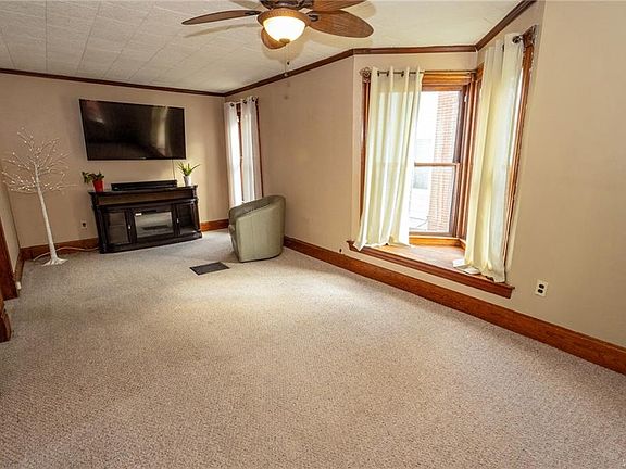 1500 sq ft, 4 bed, 1 bath SOLID house in he city! This well cared for home is warm, welcoming and boasts a large living room, cozy den, eat-in kitchen, newer 1st floor laundry and bath and 4 good sized upstairs bedrooms. This house has plenty of space to entertain on an open front porch, 3 tiered backyard deck for dinners, yard full of garden space, a playhouse for the fun and extra rear garage space for tinkering or storage. This home is full of improvements in the last few years including: carpeting, flooring, 5 yr metal roof, basement block windows and all plumbing. Come see this home!