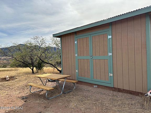 READY TO BUILD ON THIS GORGEOUS PIECE OF LAND just outside Patagonia Town limits. Almost 14 acres with everything in place to start building. Large storage shed ready to house your tools and equipment. Well with pump and pressure tank, and electricity already pulled to the building site. Complete septic system with tank and leach field is already installed. Only a mile from Hwy 82 with easy riding or hiking up the road to the Coronado National Forest. Electrical transformer already in place on the lot. Land is dividable for future potential income. Come see the dawn break over Red Mountain and stay to see the sunset and the star filled sky after dark. No HOA or CC&C's to cramp your style -- just a simple Road Maintenance Agreement. Stunning views of Red Mountain.