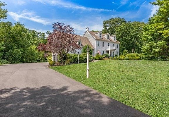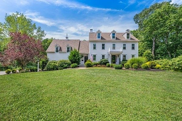 This stately Colonial proudly sits on 3.98 acres and features all the amenities buyers will love. With updates throughout, this immaculate home is perfect for entertaining and family living! The first floor is perfectly laid out featuring a large kitchen with a 9 foot island, sun-drenched dining room, front to back family room, home office, mudroom, half bath and access to a large deck your guests will love.Head upstairs and be greeted by 5 spacious bedrooms, a shared bathroom, large laundry room & a vaulted primary bedroom with a private deck, two closets and a beautifully renovated bathroom. The finished lower level provides more living space with a media/recreation room, fitness room, wine nook, additional refrigerator, new full bathroom and ample storage areas. Walk out to the inviting patio overlooking the private tree-lined backyard with irrigation and an out door shower. Bonus- unfinished third floor perfect for more storage or additional living space. All within minutes to RT 3