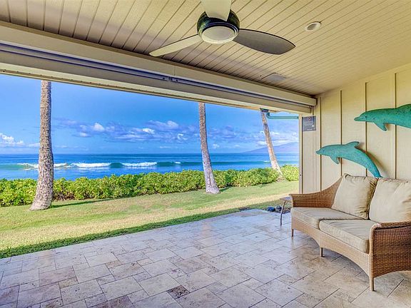 Welcome to your Premiere Oceanfront Home: 19 Puamelia Place #3 in the gated community of Puamana, Maui. Just north of the beach access, 19-3 is central yet private with undoubtedly the best location within Puamana. Relax on the spacious lanai and watch surfers, whales and sunsets, depending on the season. Wax your board and paddle out as this property is located on the main Puamana surf spot. A short walk to the historic clubhouse where you can work-out in the oceanfront gym, celebrate birthdays or visit the library. Stroll the 30 oceanfront acres, play tennis or swim in one of the three pools, one directly oceanfront. Puamana is a low-density oceanfront community with that Hawaiiana charm, located within easy biking distance to historic Lahaina town. With the mild climate and clear waters, you will see why Hawaiian Royalty made Lahaina their home. Puamana is permitted for vacation rentals. 19-3 features a designated carport right out front along with additional open parking nearby.