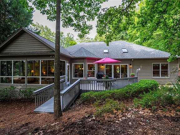 Come home to 19 Quartermaster Drive in the full amenity community of Keowee Key; affordable living featuring multiple marinas, beaches, pools, golf, tennis, pickleball, dining, walking trails and more! This lovingly maintained home offers main level living located directly off the 14th fairway of the golf course. Equipped with three bedrooms and two full bathrooms, this split floor plan lives larger than it seems. Featuring a cathedral ceiling and glass sliding doors along the golf course side of the home, enjoy a quiet morning by the fireplace or a bright cheerful afternoon on the open deck. When you don't feel like going outdoors, bring the outside in at the family favorite sunroom. Tucked off the right rear corner of the home, this spacious extra living area features bright light on all three sides. The living area features two sky lights that provide tons of natural light, while the breakfast nook features a large bay window overlooking the backyard. A large primary suite features a specialty ceiling with a spacious bath, double vanities and a walk-in closet. On the opposite side of the home are two guest rooms with a full bath between. The spacious garage features a workshop space set to the side, plenty of room for the family hobbies and additional storage. Stroll around the entire yard, with level grounds on all sides. A unique feature that isn't easily found in the foothills of our mountain lake region. Mature trees shade the deck and offer privacy from the distant fairway. A true treasure that invites you home. Keowee Key is a gated community providing an unparalleled lake lifestyle including two marinas, a waterfront leisure walking trail, dog park, pickle-ball and tennis courts, a recently redesigned golf course, two outdoor pools, an indoor pool and fitness center, private beaches, pavilions, a restaurant and multiple eateries.