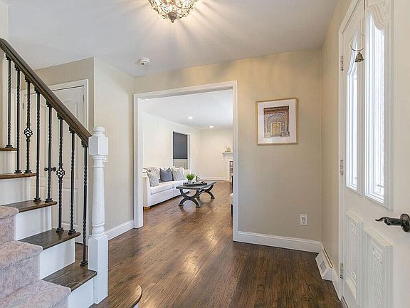 A home that has been fully updated, has a huge yard and is tucked away on a quiet street sounds like a dream. But you can find it and more in this 5-bedroom Colonial, well-appointed with room for the needs of a growing family. The foyer has hardwood floors, updated staircase and great flow and is flanked by a large family room and formal living room each with its own fireplace. Entry from the garage enjoys the ease of a side access mudroom, perfect for coats and backpacks. A convenient 1st floor laundry and a half bath lead on to the eat-in kitchen with granite counters, s/s appliances and slider to the deck. The dining room, richly painted with chair rail, is perfect for hosting family gatherings. The master boasts a walk-in closet and modern ensuite bath with granite vanity, walk-in shower and tile plank floor. The 2nd floor continues to WOW with 4 guest bedrooms with ample closets and space for an office, nursery or hosting guests, plus 2 linen closets and family bath. Extra living space in the lower-level family room with built-in bar. Other mentions - brick patio, and wood deck for outdoor enjoyment. 3 areas for basement storage, Pella windows '10, roof '04, gutters '06, and 2 newer central air units, Gas forced warm air '03. Live your dream in this wonderful home!