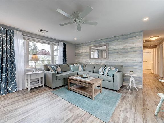 Welcome to your dream coastal retreat at Millstone Beach Association! Rarely does the opportunity arise to purchase a move-in ready, fully-furnished home in this idyllic coastal community! This charming year-round ranch has been professionally updated and designed and offers the epitome of one-level living. It boasts a fully modernized kitchen and bath with quartzite countertops and beautiful white cabinetry, while main floor laundry adds ease to daily routines. The living room includes a wood fireplace insert, perfect for chilly evenings by the shore. The three-season insulated sunporch adds an additional 192 sf of living space and doubles as a formal dining area, accommodating large parties of 8-10 people. The sunporch transitions seamlessly to an outdoor deck with a large retractable awning and an included barbecue. Also included outdoors is a spacious shed to house all of your lawn equipment and beach essentials, in addition to an outdoor shower. The neighborhood beach is a one-minute stroll away, although if you opt, a premium golf cart is available separately for purchase with the home making trips to the beach a breeze. In addition, for those who love to fish and/or sail, docks are available to all association members on a waitlist basis. Whether you’re seeking a year-round residence or a seasonal escape, this beach house beckons you to create cherished memories by the sea!